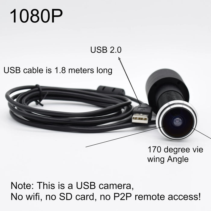This USB peephole camera offers straightforward functionality for anyone who wants dependable doorway monitoring without Wi‑Fi or cloud services. It connects directly to your computer or compatible device, giving you fast access to a live view without pairing steps or apps.