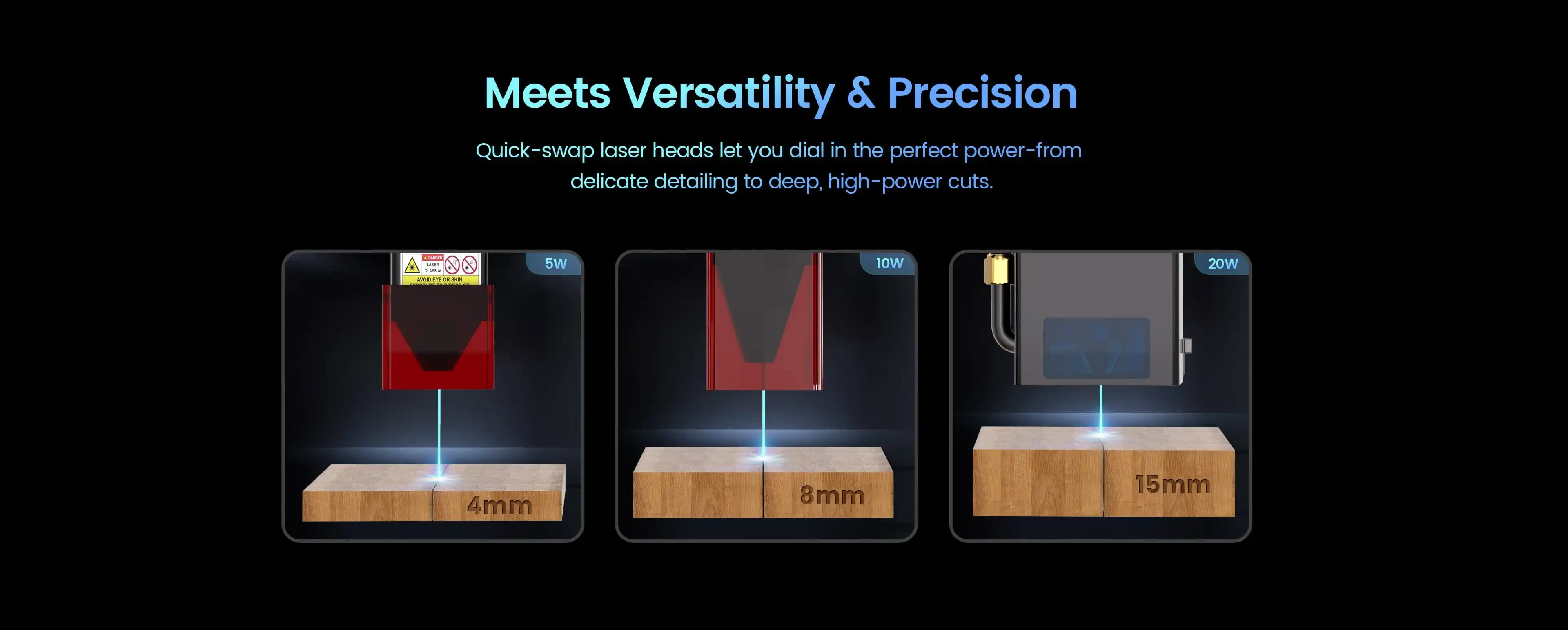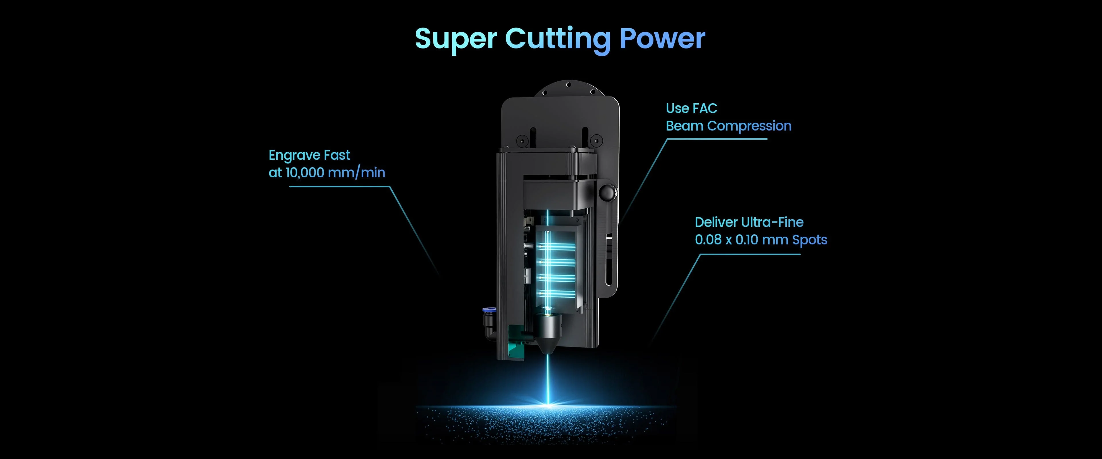S technológiou dvojitého lúča má Ray5 10W silnejší laserový výkon, čo umožňuje lepšie rezanie a gravírovanie. Dokáže rezať 20 mm hrubú drevenú dosku a 30 mm akrylát. Má gravírovaciu plochu 400x400 mm a rýchlosť gravírovania 10000 mm/min.